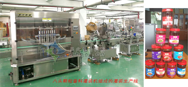 八头全自动颗粒酱类灌装机是我公司自主研发的直流式酱料灌装机,该设备自主化程度高,性能稳定,操作直观便捷。设备主要材质采用316L不锈钢制作,安全卫生。也可组成芝麻酱灌装生产线使用,生产效率大幅提高。广泛适用于芝麻酱、果酱、辣椒酱、花生酱、牛肉酱等颗粒粘稠酱料的瓶装灌装,在食品、日化、化工、药品等行业都有广泛的市场。